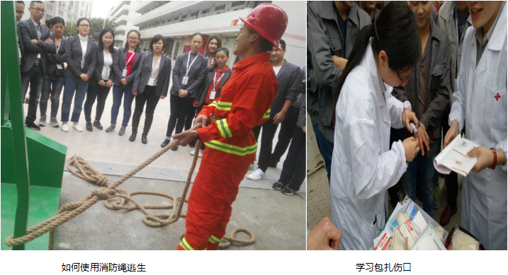 此外,公司還安排了學習消防知識和使用消防器材的環(huán)節(jié)。學習內容包括如何報警、如何使用滅火器、如何使用消防栓及消防水帶、如何使用消防繩逃生、如何急救等。其中滅火器及消防水帶使用外請園區(qū)安全防護工作人員指導完成。全體人員分四個小組輪流學習,并積極主動體驗實際操作。