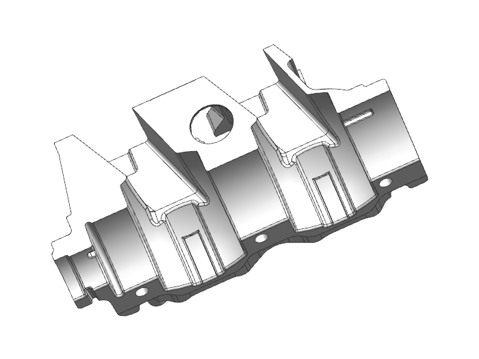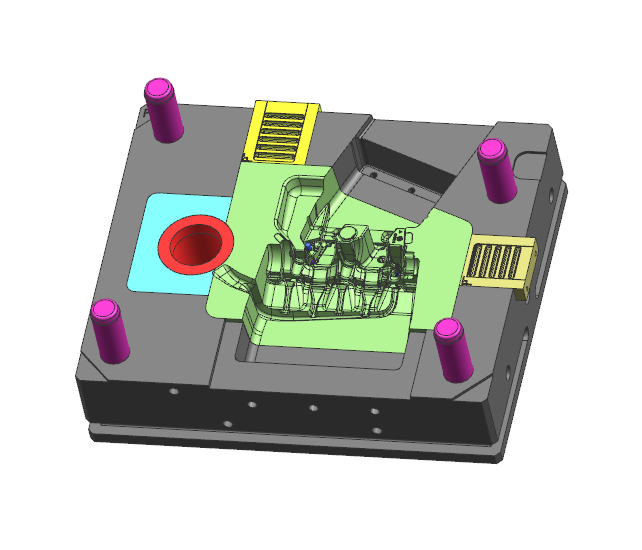 1. 此項(xiàng)目屬汽車曲軸箱模具,產(chǎn)品氣密性要求比較嚴(yán)格,模具入料方案采用在壁厚位置撘底的方案;