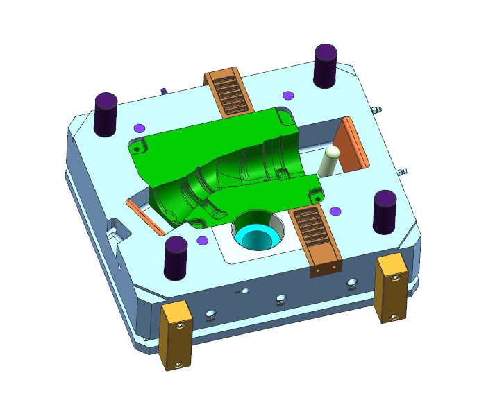 2. 模具結(jié)構(gòu)采用機(jī)械力先將行位撥動5-10.00mm,油缸在抽出產(chǎn)品,有效減少行位抱緊在產(chǎn)品內(nèi);