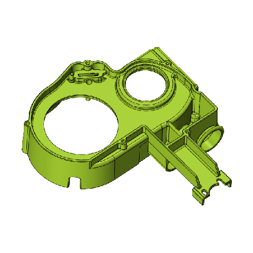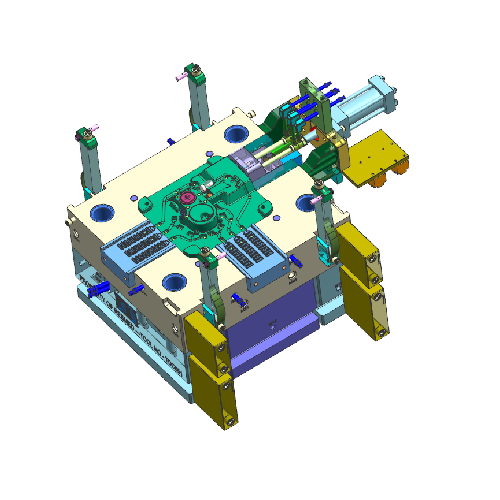 三板模結(jié)構(gòu)填充行程短、填充同步,保證了產(chǎn)品的成型,特殊的流道倒扣結(jié)構(gòu)保證了開模中使用機械力與流道自動拉斷,且使用特殊的扣機機構(gòu)確保模具在開模拉斷流道的過程中,后模與前模板不分開。