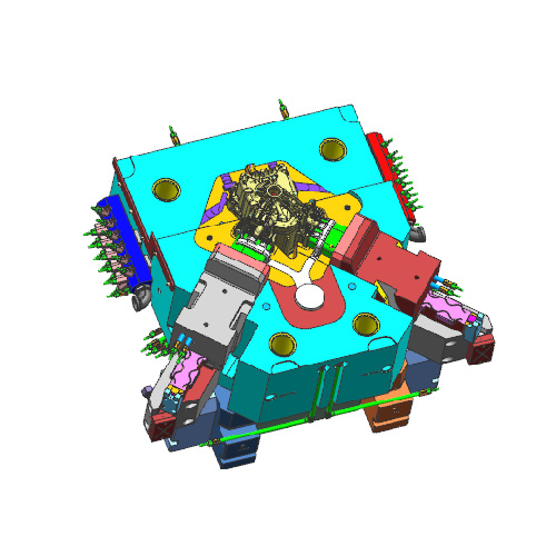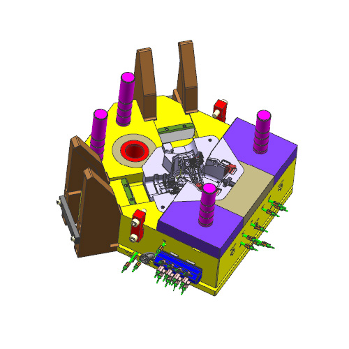 滑塊座兩側(cè)采用斜拉板代替斜導(dǎo)柱結(jié)構(gòu),使滑塊活動(dòng)時(shí)受力更均衡平穩(wěn)。