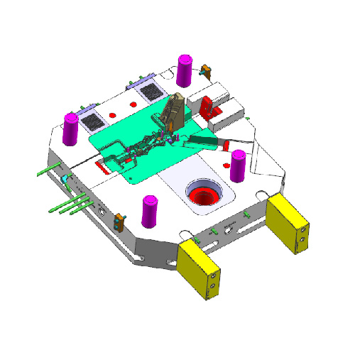 大角度斜行位,采用彎銷結(jié)構(gòu),斜行位運(yùn)行前,彎銷先松動(dòng)斜行位。斜行位合模后,彎銷鎖緊斜行位,避免生產(chǎn)時(shí)斜行位退位。還包含有一處行位鎖緊行位的結(jié)構(gòu)。