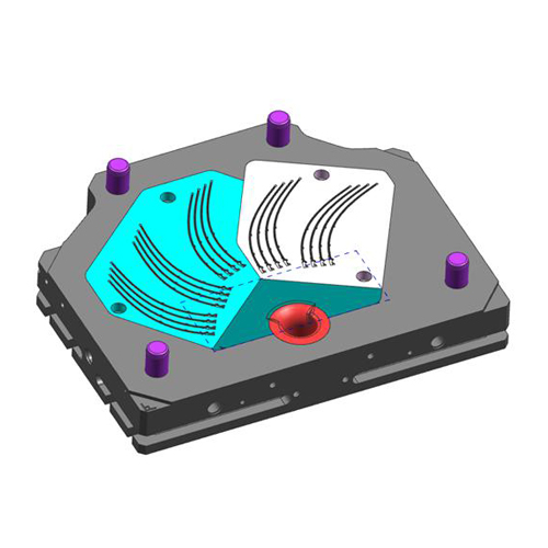 產(chǎn)品成型穴數(shù)較多,選擇合理的產(chǎn)品入料位置減少了機(jī)臺噸位,并且流道填充同步性對產(chǎn)品成型起到?jīng)Q定性的關(guān)鍵,合理論證并設(shè)計(jì)了模具入水、排氣以及冷卻系統(tǒng),有效的保證了產(chǎn)品生產(chǎn)的良品率,此項(xiàng)目無任何渣包系統(tǒng)即可滿足產(chǎn)品表面的成型;